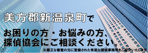 美方郡新温泉町で探偵、興信所をお探しの方、お困りの方、社団法人探偵協会にお任せください。