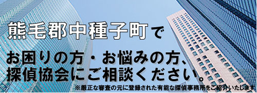 熊毛郡中種子町で探偵、興信所をお探しの方、お困りの方、社団法人探偵協会にお任せください。